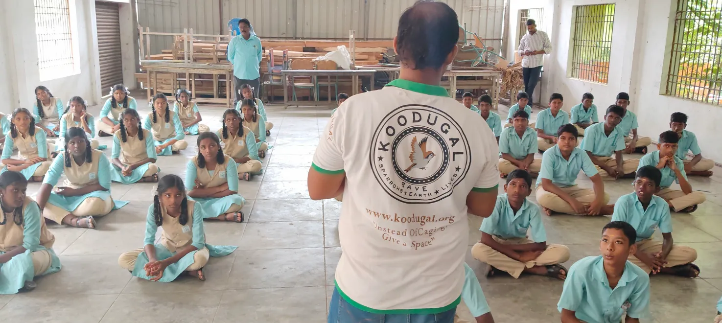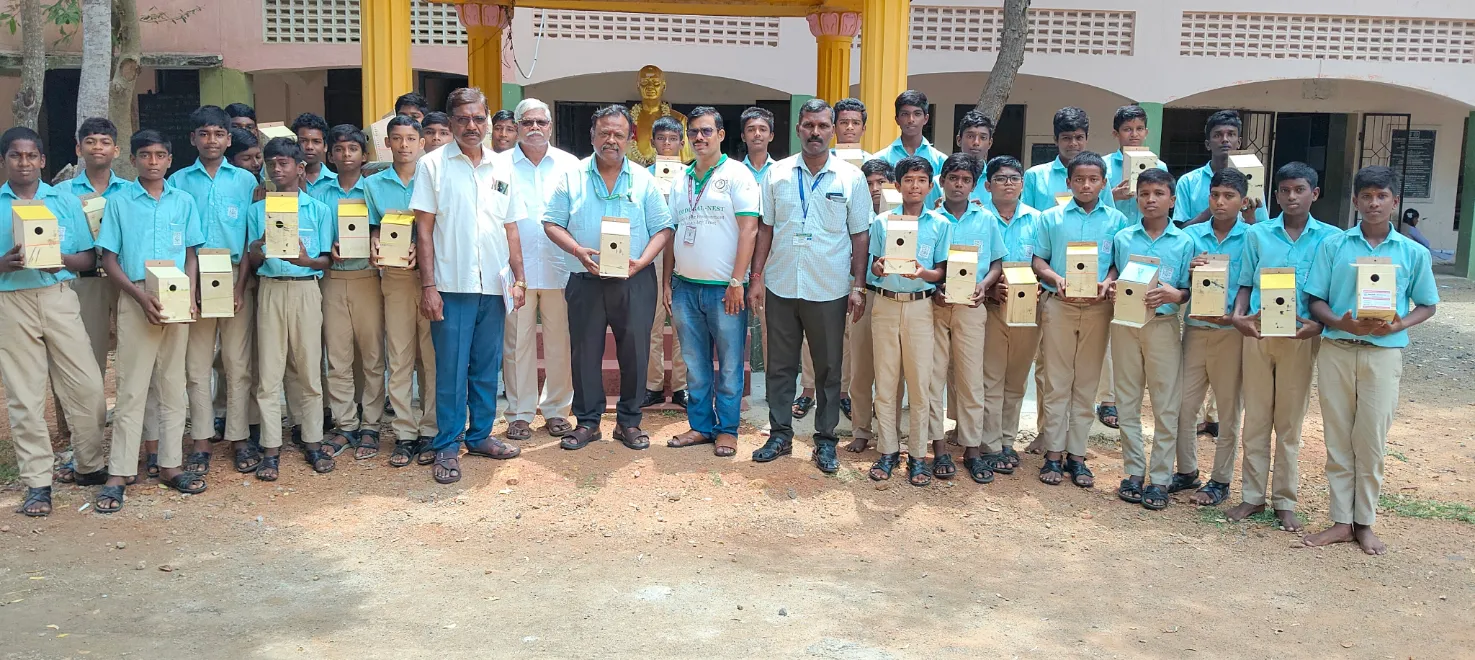 With this thought, Mr Poongundran approached the Headmaster, Mr Balamouraly, and shared our vision. He was enthusiastic about the initiative and readily agreed to host the program. On 9th September 2025, we successfully conducted the Sparrow Conservation Program at the school, making it a special and memorable start to our work in the region.
