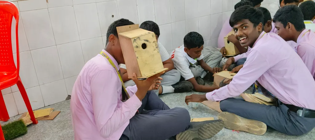As part of our plan to expand Koodugal initiatives across various districts of Tamil Nadu, I began reconnecting with my former school and college networks, as well as students I had mentored during my tenure as a professor. This rekindled connection brought together individuals who shared similar values and a passion for community-driven environmental work. Through these renewed associations, I connected with my former student, Mr. Bala from Melur, Madurai District. With his support, we collaborated with local schools in the region and successfully executed the Sparrow Conservation Program marking our very first initiative in Madurai District.